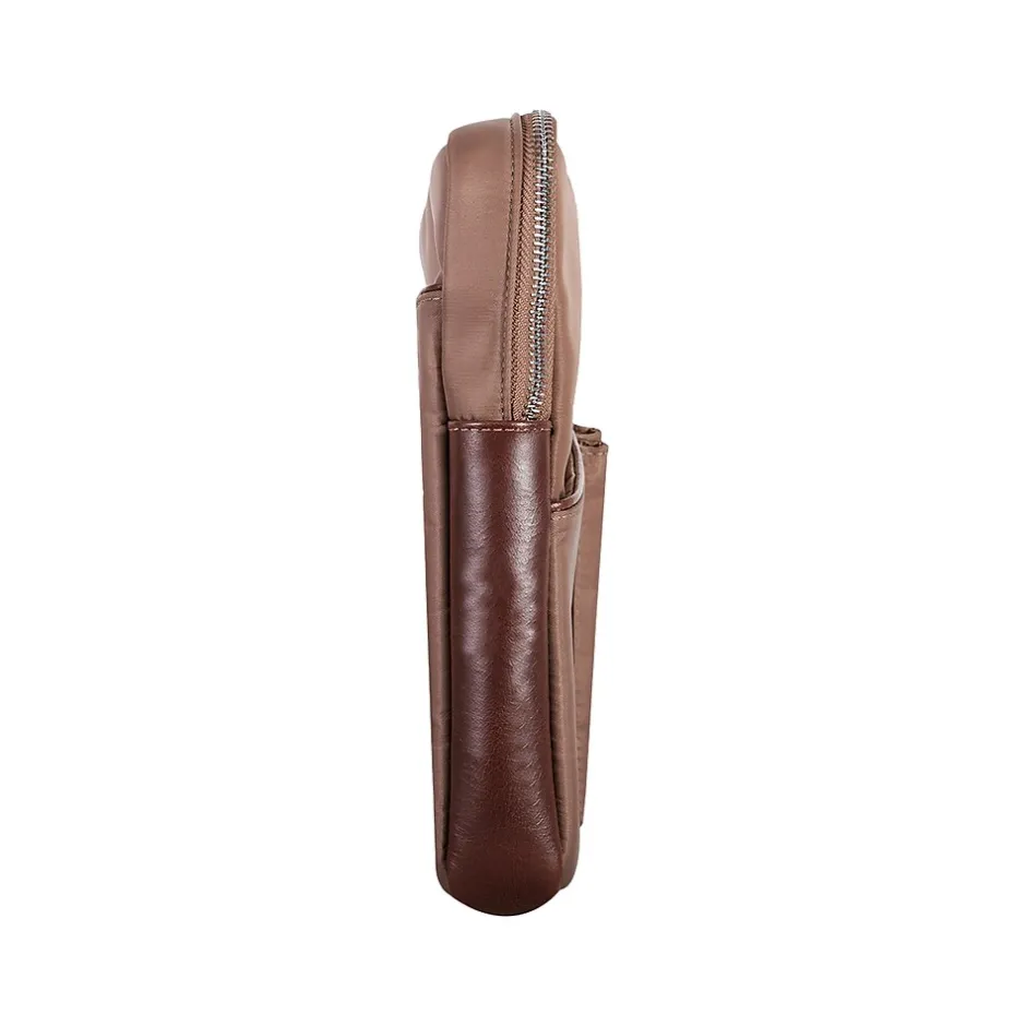 This padded nylon laptop sleeve with leather accents has a fully lined interior. It also features an easy-access front organizer for pens and accessories and a back full-length file pocket.