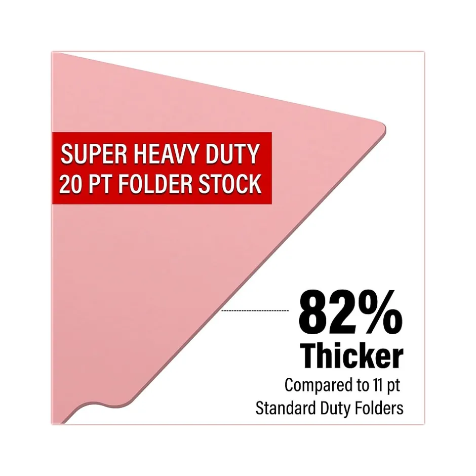 - Heavy-duty file folder made of 20 pt. paper stock in pink