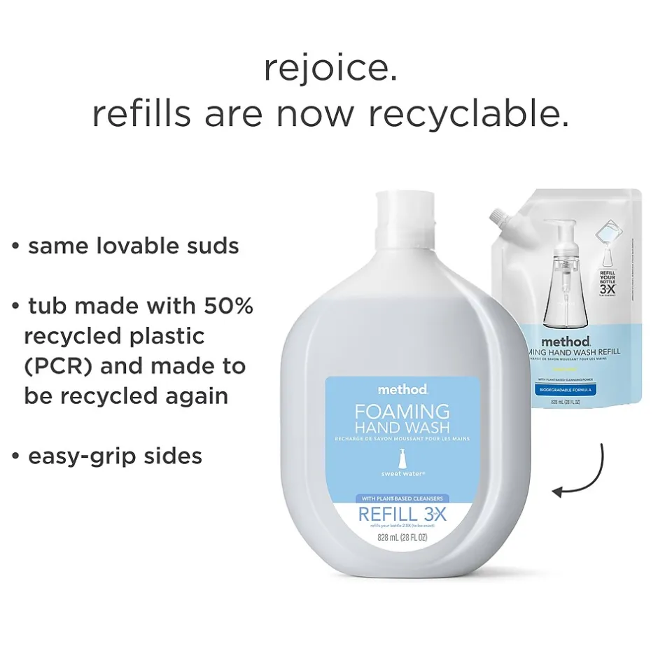 The Method hand soap refill is full of enough biodegradable, naturally derived gel hand wash to refill your bottle nearly three times. Because the only thing worse than dirty hands is employing jeans-wiping as an interim solution. This adorably cubby tub packed with plant-based grease-cutting power is made with 50% recycled plastic and designed to be recycled again. Easy-to-use: remove the lid from the gel hand soap bottle and carefully refill, and leave about an inch at the top if you have a pump bottle. Replace the lid, pump a few times, and you’re back in dish business.
