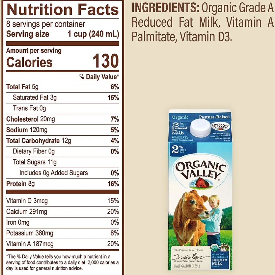 - A 3 pack of Organic Valley Reduced Fat 2% Ultra Pasteurized milk in 64oz cartons