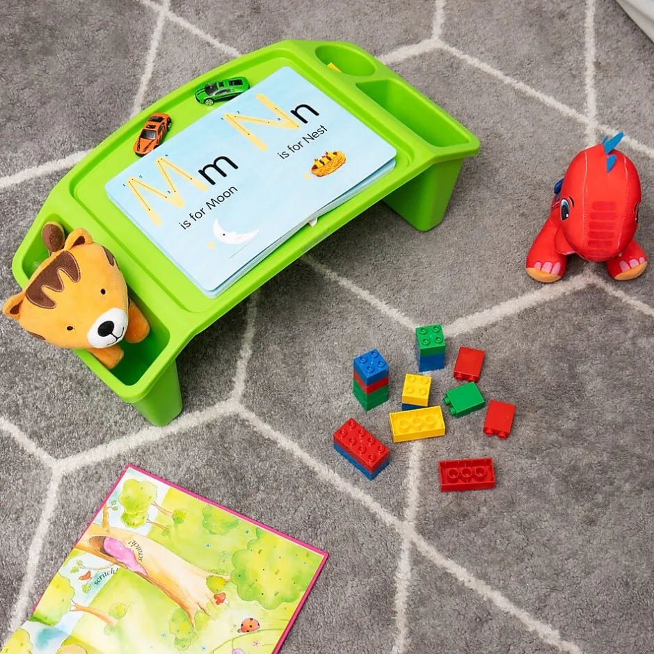 Introduce convenience and portability into your child’s routine with this set of two portable lap desks. A versatile solution for kids who need a stable surface for various activities, from playing and drawing, to snacking or using a laptop or tablet. Ideal for use on the couch, bed, or floor, these lap desks can turn any place into a comfortable workstation, making them perfect for sick days, rainy days, or everyday use.Despite their robust construction, these lap desks are incredibly lightweight at just 1.2 lbs (0.07 kg), making them easy to move from room to room or take along on vacation. With three side pockets, they offer additional storage space for keeping essential items within reach during or after playtime.Spills can be quickly cleaned with mild dish soap and warm water, while the built-in channel around the desktop prevents minor spills from spreading.These lap desks are an ideal surface for a variety of tasks, from creating art and doing schoolwork to eating meals and more. They make an excellent gift for budding artists or any child who could benefit from having a comfortable, portable table for snacks, reading, crafts, and other activities.