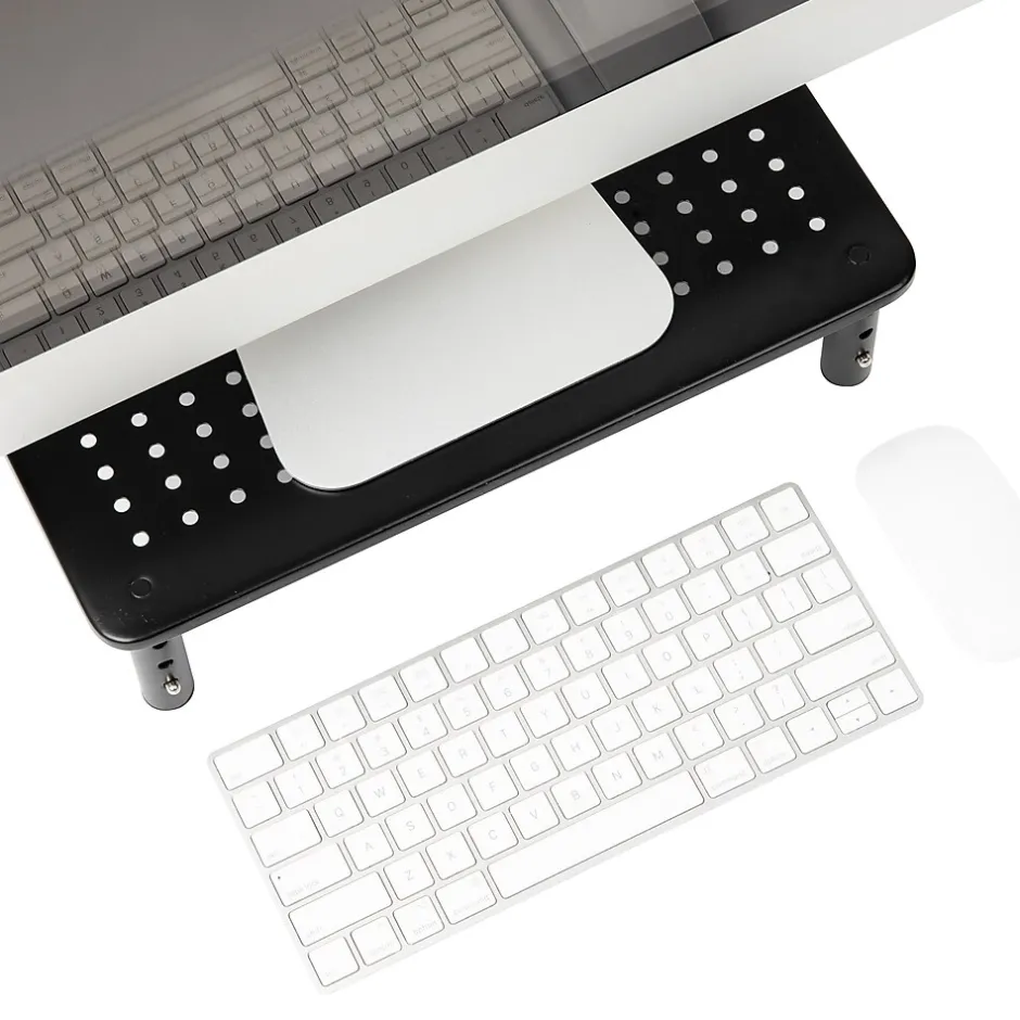 - Sleek and Ergonomic Design: With its stylish design, this monitor stand blends well with any environment. The open grid design not only adds to its aesthetic appeal but also allows for optimal ventilation, preventing your electronics from overheating
