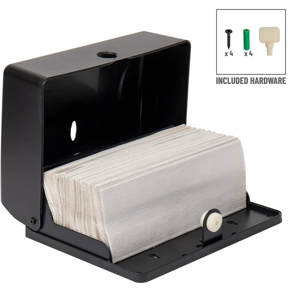 Enhance your hand washing routine with our convenient Wall-Mounted Paper Towel Dispenser. The easy assembly process enables you to mount the dispenser to the wall in minutes, ensuring that paper towels are readily available right after washing your hands. Designed to hold C-fold paper towels measuring 8.9 inches wide (22.5 cm), this dispenser is perfect for any handwashing station.With a one-at-a-time dispensing mechanism, this unit helps reduce paper towel waste while providing a more hygienic experience. Its solid construction and design prevent ripped and torn towels, ensuring each sheet remains intact and usable.The front window allows you to monitor the paper towel levels effortlessly and determine when a refill is necessary. When it’s time to replenish, the push-button mechanism on the top of the dispenser makes the process quick and simple.Upgrade your hand washing experience with our Efficient Wall-Mounted Paper Towel Dispenser, and enjoy a cleaner, more streamlined routine.
