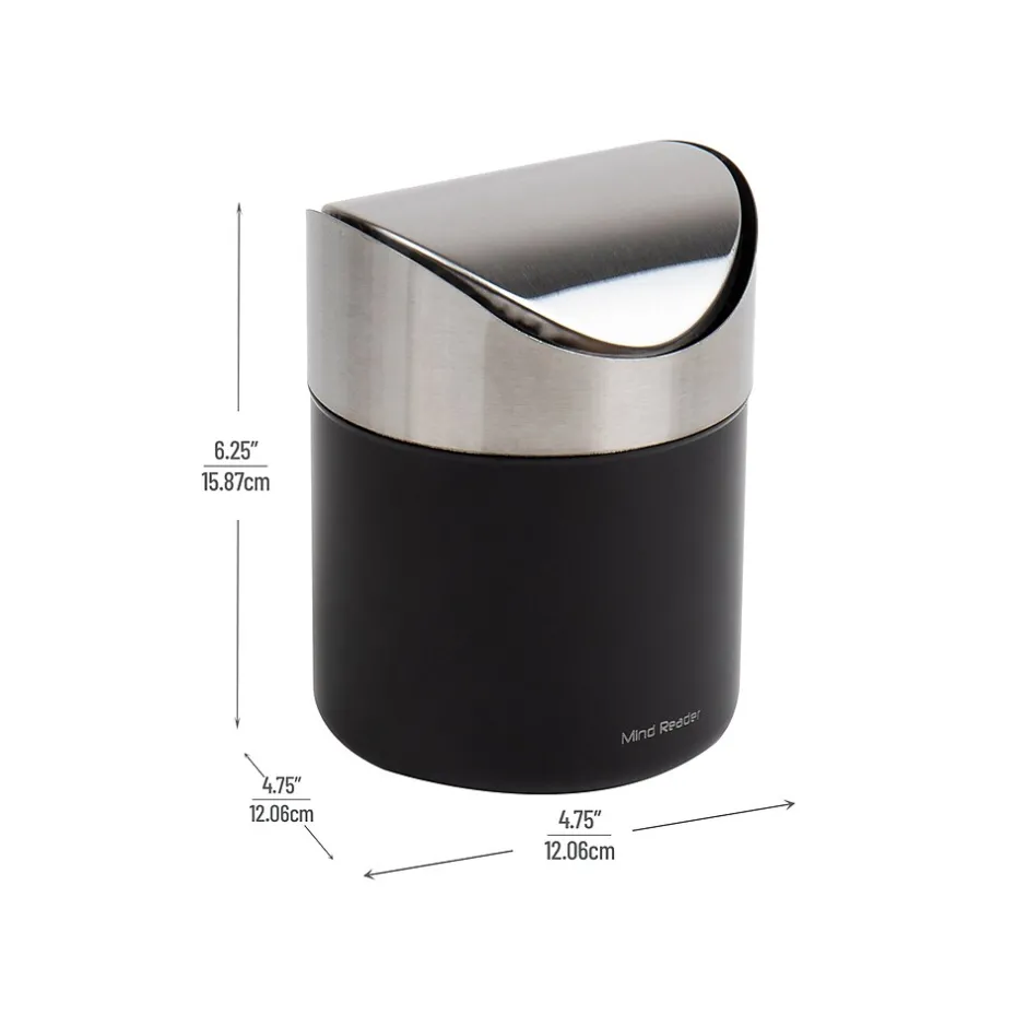 Introducing the perfect solution to pesky small pieces of trash, the compact countertop trash can. Finished in a fingerprint-resistant satin, this trash can effortlessly fits into any decor, making it a great addition to any home or office.Are you tired of having to walk to a larger wastebasket to discard small items? This compact trash can sits neatly on your desk, allowing for easy disposal of unwanted papers, coffee stirrers, single serve coffee pods, or other small pieces of trash. Standing just over 6 inches tall, it fits perfectly in any small space. It’s excellent for composting under a sink or cabinet or for recycling paper on your work desk.With this set of 2 compact trash cans, you can conveniently place one in another room or office. Ideal for breakrooms, they can be set up next to the coffee station for easy garbage disposal. The second trash can fits nicely in the bedroom or bathroom, discreetly holding discarded cotton swabs or balls, paper tissues, paper towels, and other frequently used items.These compact trash cans make excellent gifts for anyone needing a trashcan near their desk or for students heading to dormitories, where space-saving is always a priority. Make your life easier and neater with these compact countertop trash cans!