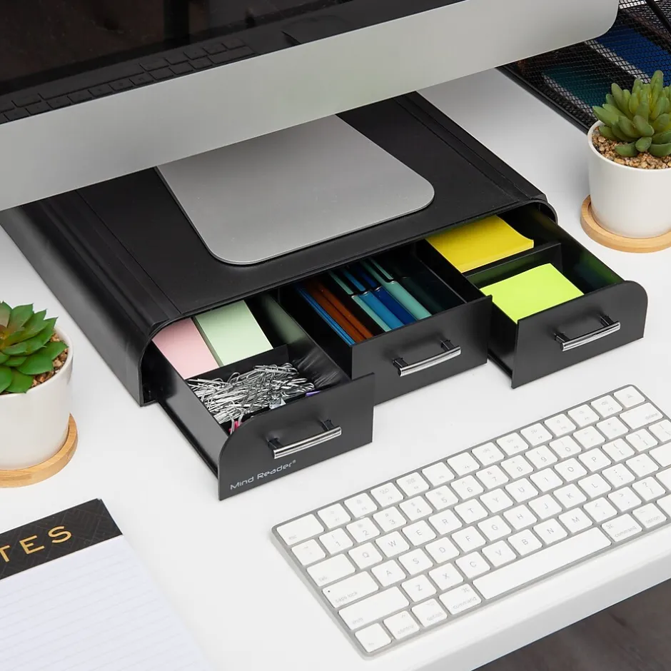 Mind Reader Monitor Stand and Desktop Organizer with 3 Storage Drawers, Black (MONSTA3D-BLK)* Monitor Mounts & Stands