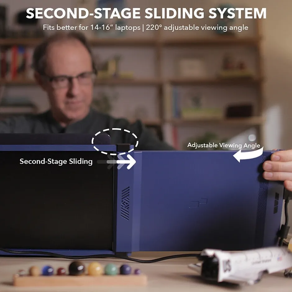 Never worry about not having enough to space on your laptop screen to see everything you need for work or pleasure with the Mobile Pixels DUEX Max. It’s a light, extended dual-screen laptop solution, allowing you to double your screen space. Utilizing the Blue DUEX Max 14.1 in. portable LCD, you can easily convert your single laptop displays into 2 LCD screens total.
