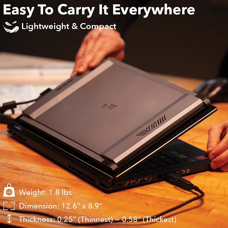 Never worry about not having enough to space on your laptop screen to see everything you need for work or pleasure with the Mobile Pixels DUEX Max. It’s a light, extended dual-screen laptop solution, allowing you to double your screen space. Utilizing the Gray DUEX Max 14.1 in. portable LCD, you can easily convert your single laptop displays into 2 LCD screens total.