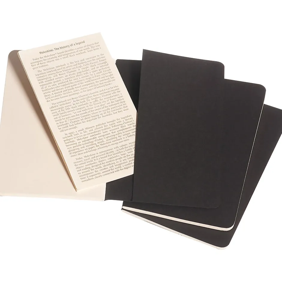 Draw landscapes and renderings in these Cahier journals. Plain pages create a blank canvas ready for a variety of uses, and visible stitching on the spine creates a handcrafted look. This 3-pack of Moleskine Cahier Pocket black journals has 16 detachable sheets for cleanly and quickly sharing notes, and the back pockets provide space to stick cards, mementos, and other small items.