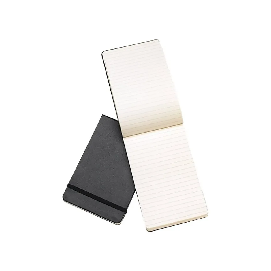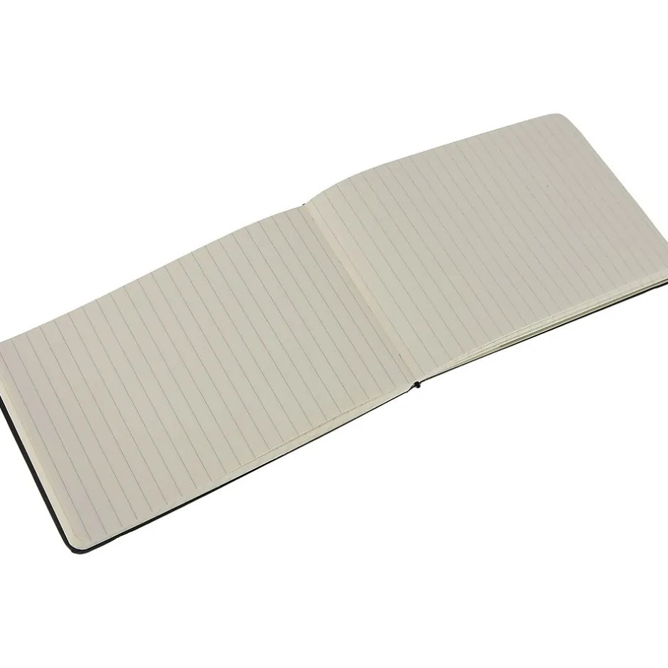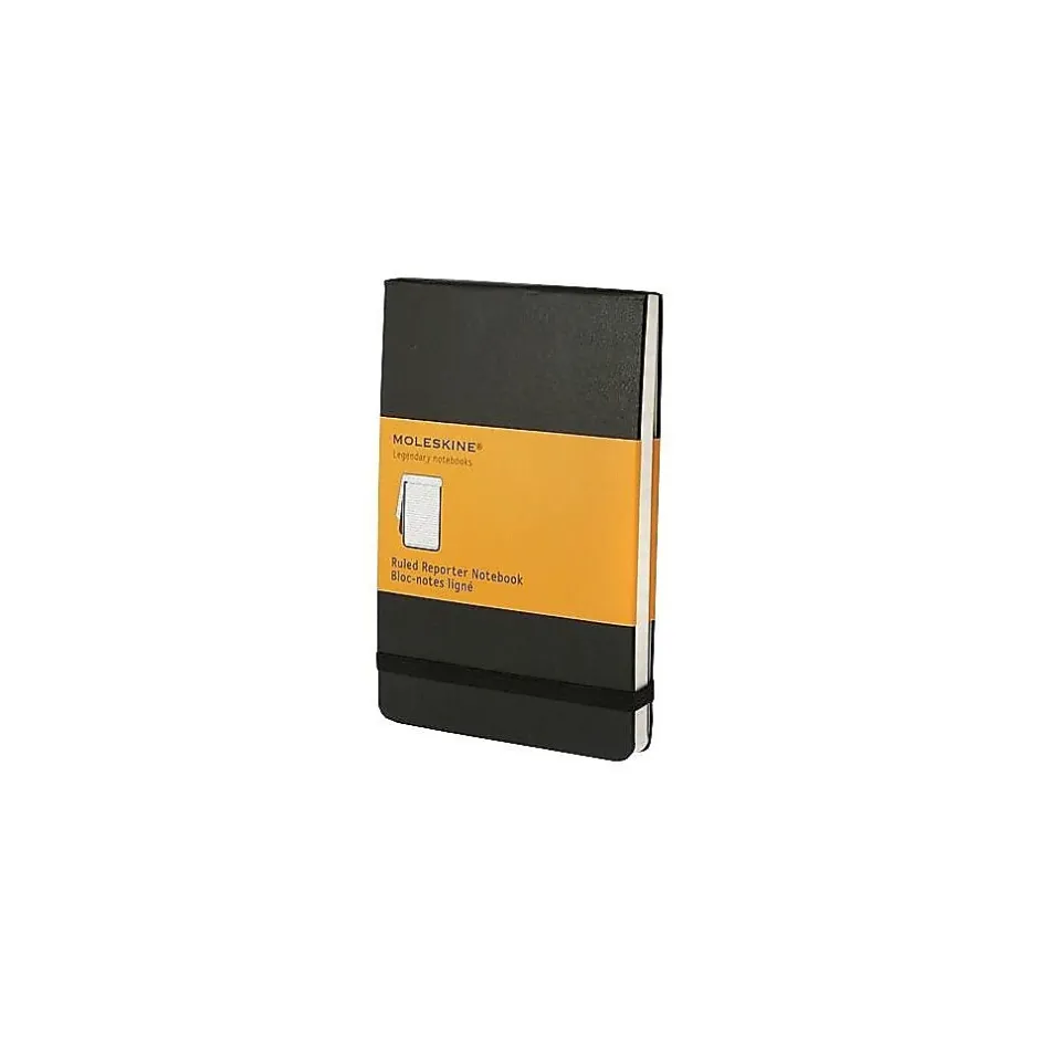 Carry this pocket-size black reporter notebook with you to jot down notes as needed. The back of this notebook has an expandable pocket for storing loose papers, while the hard cover protects pages from bending, spills, and other damage. This Moleskine hard-cover reporter notebook has 24 sheets that can be removed and a black textured cover that provides a sophisticated appearance.