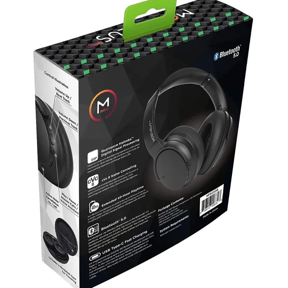 Our Morpheus 360 Eclipse 360 Wireless Noise Cancelling Over-Ear Headphones were designed to provide a quiet environment where you can focus on what matters. We selected Kalimba Digital Signal Processing and combined it with the MeloD Sound Codec to create a ultra-wide 3D Sound stage for a truly immersive experience. Built on the Bluetooth 5.0 platform, our Wireless Headphones support a truly wire-free listening experience, with robust connectivity when making calls and listening to music, an easier pairing experience and longer battery life. We added CVC 8.0 Noise Cancelling Microphones that utilize a set of embedded algorithms, that create a quiet environment for clear communication, while cancelling out ambient room noise. Our Headphones work up to 40 hours on a single charge and work in Wired mode with the included cable even once they run out of power. We engineered our Eclipse 360 Bluetooth Headphones with USB Type-C fast charging and a specialized battery that charges twice as fast. In the rare case that your Wireless Headphones run out of power, a 15-minute quick charge will provide up to 5 hours of use. Our Bluetooth Over-ear Headphones come with a hard shell carrying case with mesh pockets, to organize your cables and Headphones when traveling.