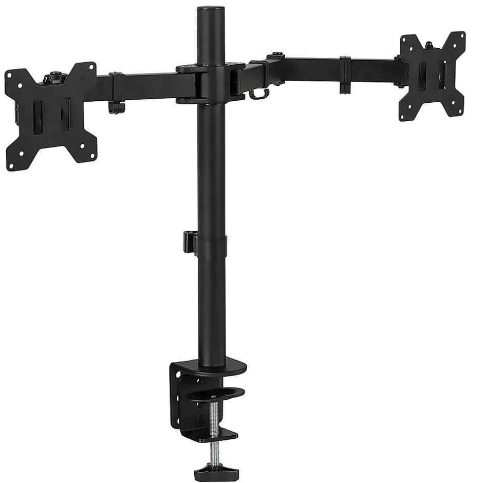 - STURDY SUPPORT and HIGH QUALITY CONSTRUCTION: Heavy-duty steel monitor mount can support to 27″ monitors for versatile use with a weight capacity of 22 lbs. per arm for a total capacity of 44 lbs.