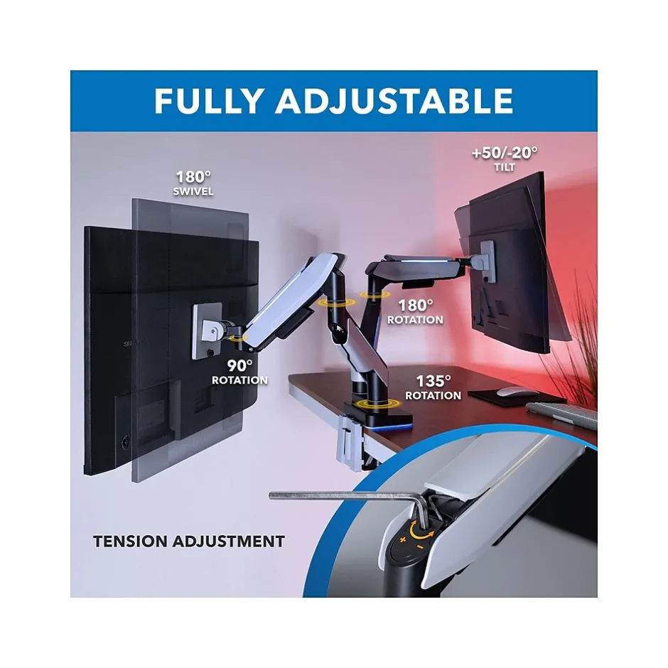 - Create your perfect immersive gaming station with this heavy-duty dual monitor arm