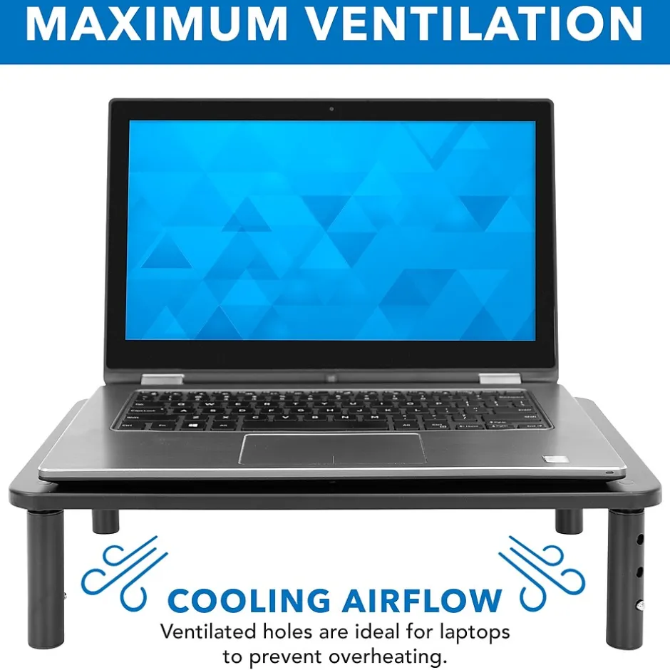 - ERGONOMIC MONITOR STAND RISERS (2-pack): Reduce hours of strain on your neck, back, and shoulders while increasing your overall health too! This computer monitor riser is both functional and stylish, with the added bonus of promoting passive heat ventilation and airflow