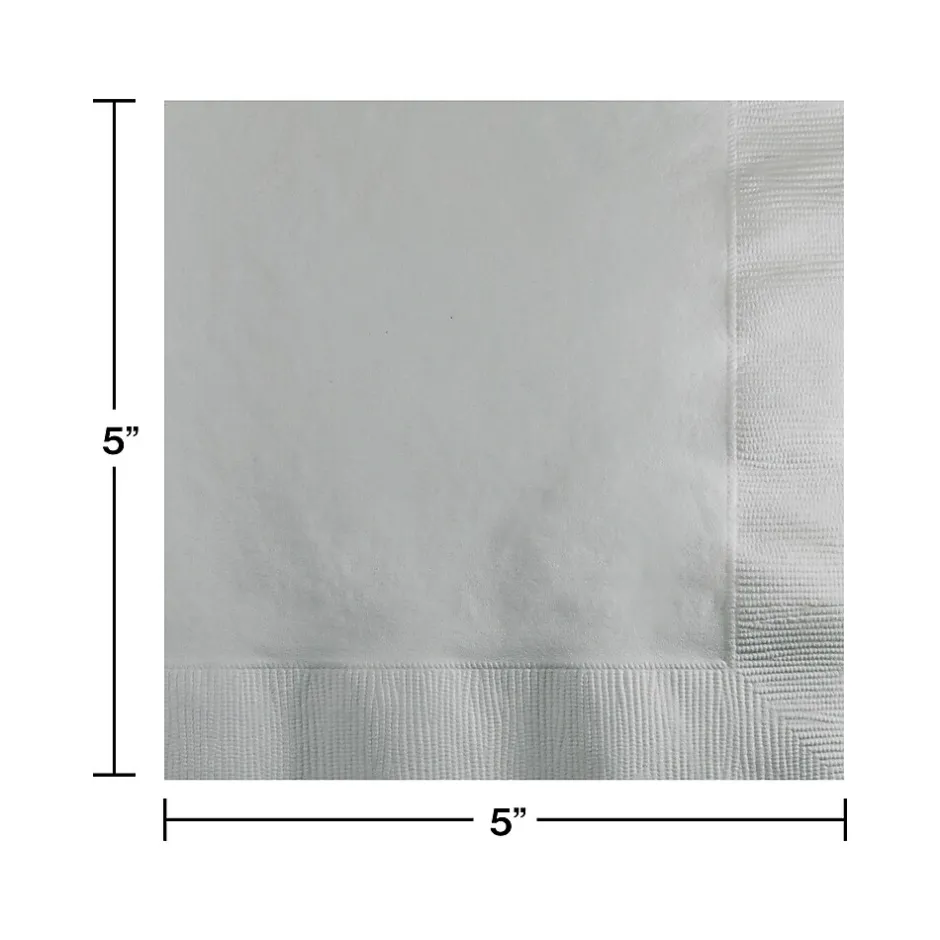 An economical yet eye-catching alternative to cloth, the shimmering silver beverage napkin will make a wonderful addition to your table display. The durable 2-ply paper napkin measures 5″ x 5″ and provides the perfect accompaniment to cocktails, appetizers, and desserts. Coming in a pack of 150, the Creative Converting drink napkin can be used alongside tableware in complementary colors, as well as other selections from the complete line of shimmering silver party supplies.
