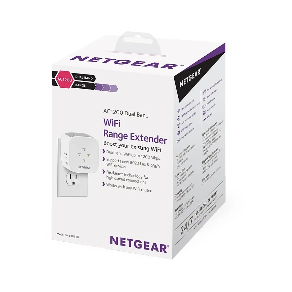 Netgear AC1200 dual band Wi-Fi Range extender boosts your existing network range, delivering AC dual band Wi-Fi up to 1200Mbps. FastLane technology improves performance using both Wi-Fi bands. High-power amplifiers and internal antenna array increase range for whole home coverage. It works with any standard Wi-Fi router and is great for HD video streaming and gaming. Get the connectivity you need for iPads, smartphones, laptops, and more.