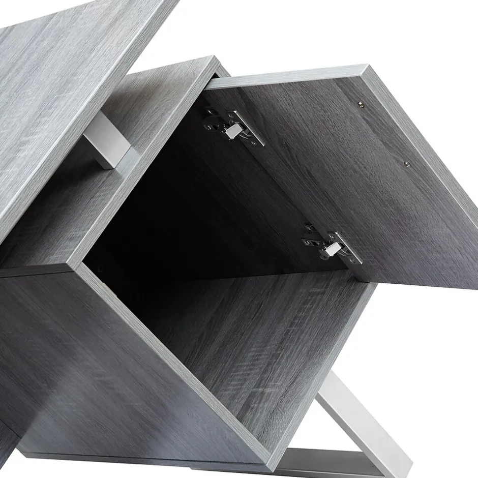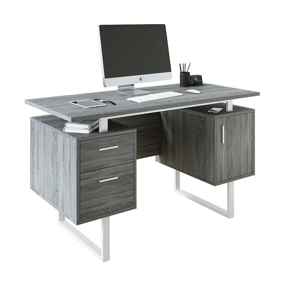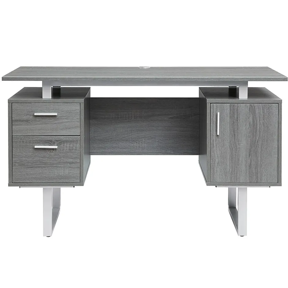 The Techni Mobili Modern Office Desk with Storage is very sleek and contemporary. This desk is the perfect combination of function, durability and design in a modern form. With clean lines, a floating top work station and sleek track metal legs, this desk will add pizzazz to any home office. Featuring two storage drawers and a file cabinet to help keep you organized with a large desktop surface to provide plenty of room for all your hardware and working needs. Color: Gray