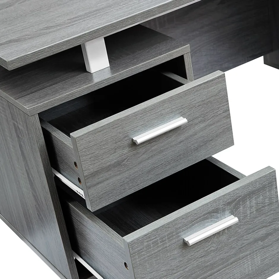 - Modern office desk with 2 drawers and 1 cabinet with silver colored handles