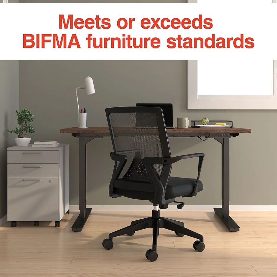 - Comfortable, breathable mesh-back task chair with lumbar support for everyday use