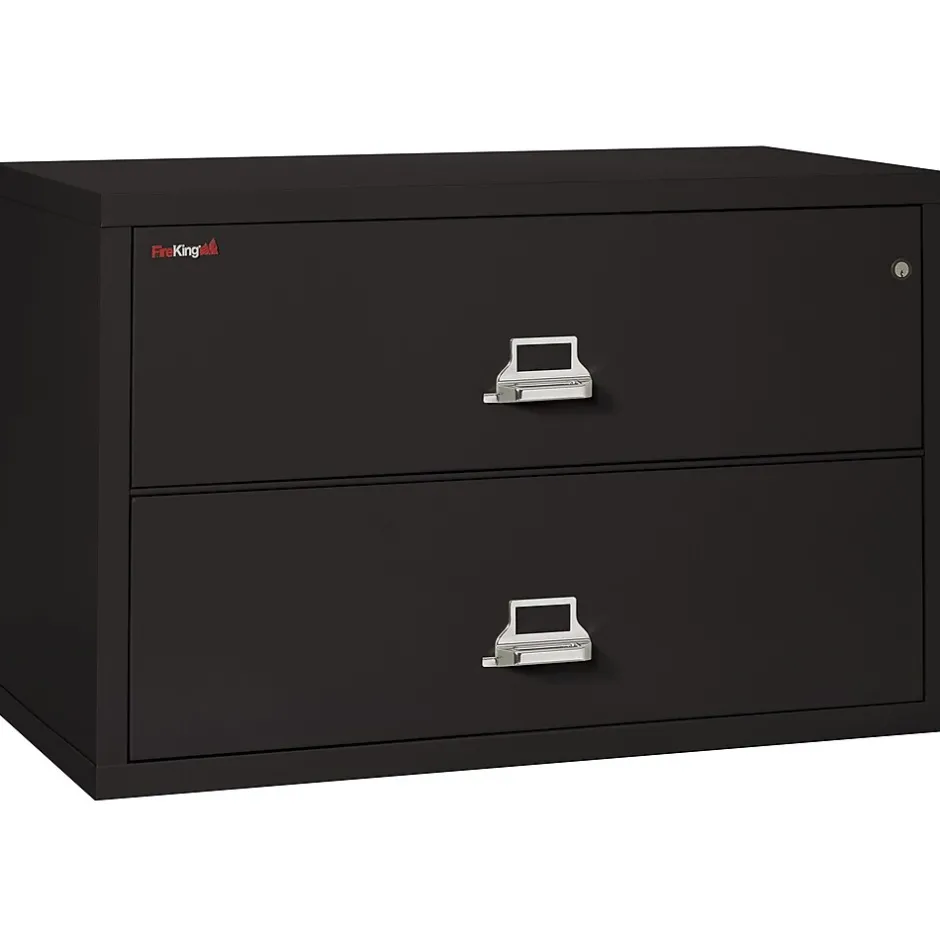 Keep computer drives and important documents safe with this file cabinet. An easy-to-access security lock at the top controls security for both drawers, and it uses anti-tip technology to reduce the chance of it overturning and spilling out the contents. Each drawer in this FireKing fireproof cabinet is individually fire and water protected to avoid proximate damage.