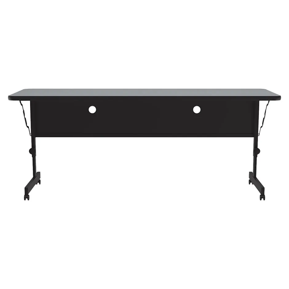 This mobile nesting option allows for easy fold-up and compact storage. The design allows for easy setup, configuration, take-down, and storage. Ideal for heavy-duty use in schools, universities, offices, hotels, training rooms, and conference areas. The thermal fused laminate top is water-, stain-, and dent-resistant.