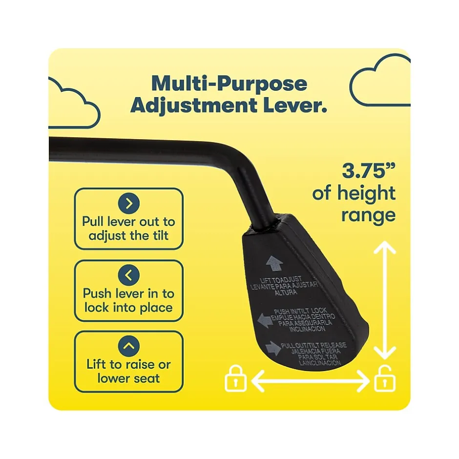 - Adjustable tilt tension knob and lock-out feature ensure customized positioning