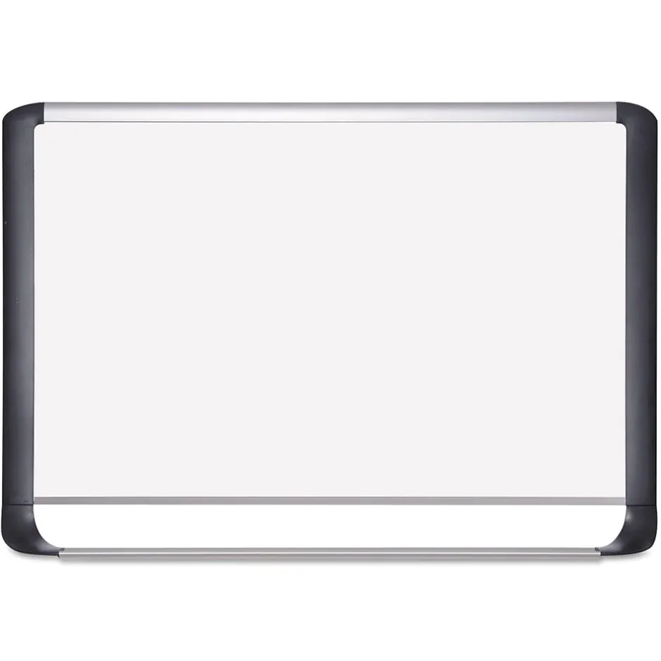 Magnetic Gold Ultra™ dry erase board allows you to post notes and messages as well as write. The lacquered steel surface is suitable for frequent use. Sleek, contemporary frame design combines aluminum and black plastic to provide a stunning yet sturdy effect that brings dry-erase into the 21st century. Full-length aluminum tray keeps what you need near to hand.