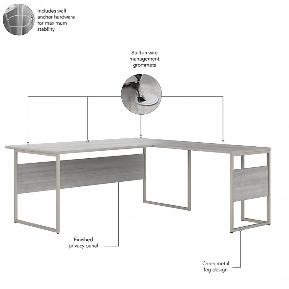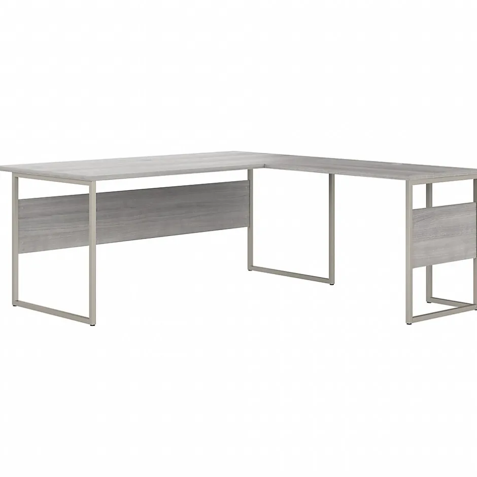 The Bush Business Furniture Hybrid L-shaped table desk blends a durable work surface with sturdy metal legs to offer a stylish, long-lasting solution for the modern professional. Tackle your next project or assignment with a computer, books, and more on a desktop that supports up to 200 lbs. Three built-in wire management grommets keep cords and cables in order, so your work area remains free from unnecessary clutter. The corner desk’s open leg design and finished privacy panel allows it to look great facing any direction in a home or professional office environment. This modern computer desk has been meticulously tested to meet or exceed the ANSI/BIFMA standards for safety, durability, and performance and is backed by a 10-year manufacturer warranty. American-made with US and imported parts.