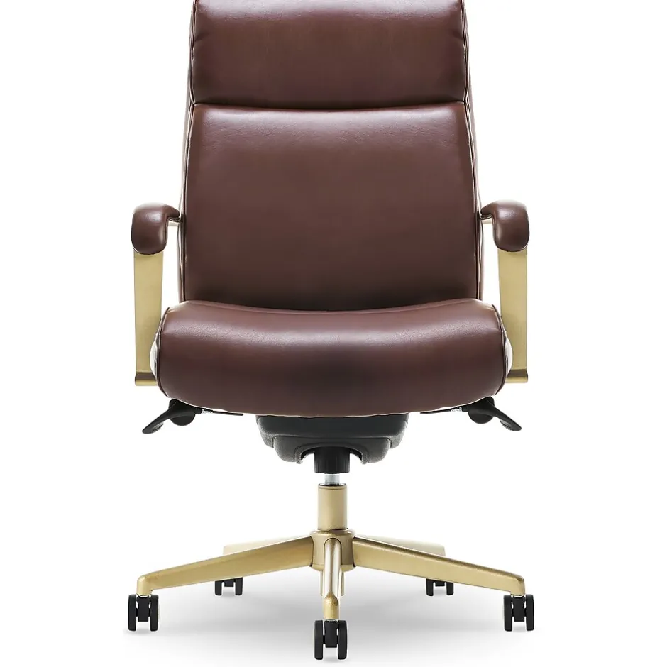 Fitting with your modern lifestyle, the Melrose executive office chair showcases clean lines, contemporary color, and overall sensibility. Smooth bonded leather offers sleek seating while maintaining a high-end look. Set on a copper-finished wheeled base, this office chair moves with ease from a day of work at your desk, to your living room for a night of gaming. The ergonomic design, full cushion foam, and adjustable lumbar support keep you comfortable and energized through every moment. Ergonomic and adjustable, this La-Z-Boy office chair allows you to control the height and tilt to suit your sit positioning and give you an optimized body alignment. La-Z-Boy office chairs are designed to put your comfort first with quality that’s built to last, so your work day is always engaged and productive.