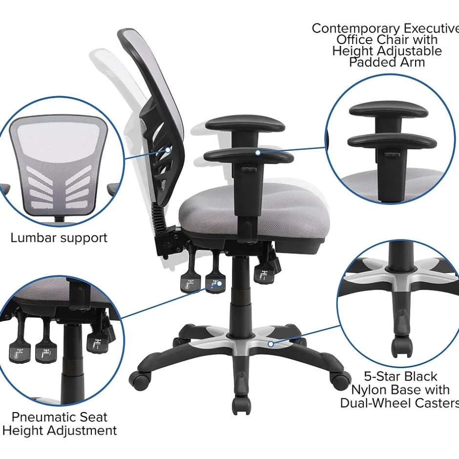 New Nicholas Ergonomic Mesh Swivel Mid-Back Multifunction Executive Office Chair, (HL0001GY) Ergonomic Chairs