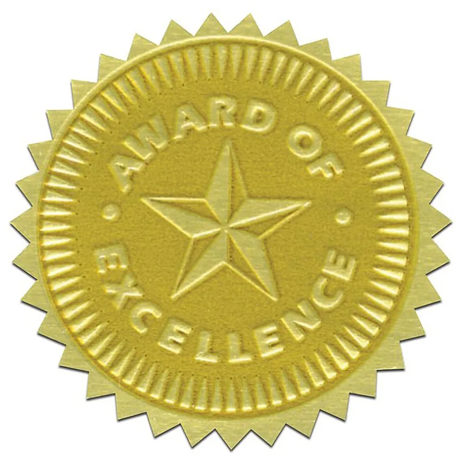 - Embossed Award of Excellence Certificate Seals, Gold Foil; Use for any classroom or school award