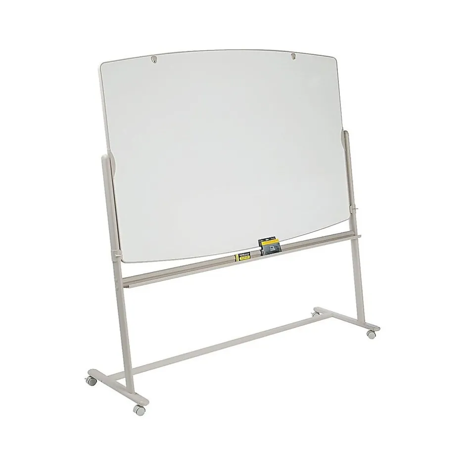 - Large mobile, double-sided vertical whiteboard is perfectly suited for moderate use in spaces with regular traffic