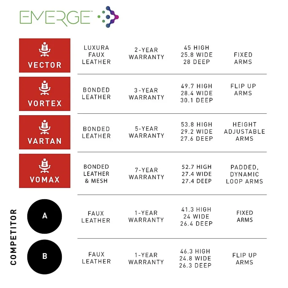- Overall Dimensions: 49.9″ – 53.8″ H x 29.2″ W x 27.6″ D