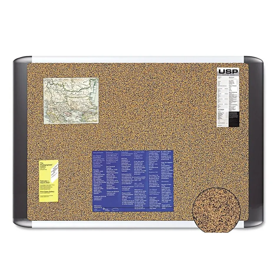 Thick and extremely resilient, the unusual surface offers a texture that gives these boards a contemporary look while providing years of use. The aluminum and plastic contemporary frame enhances any office environment.