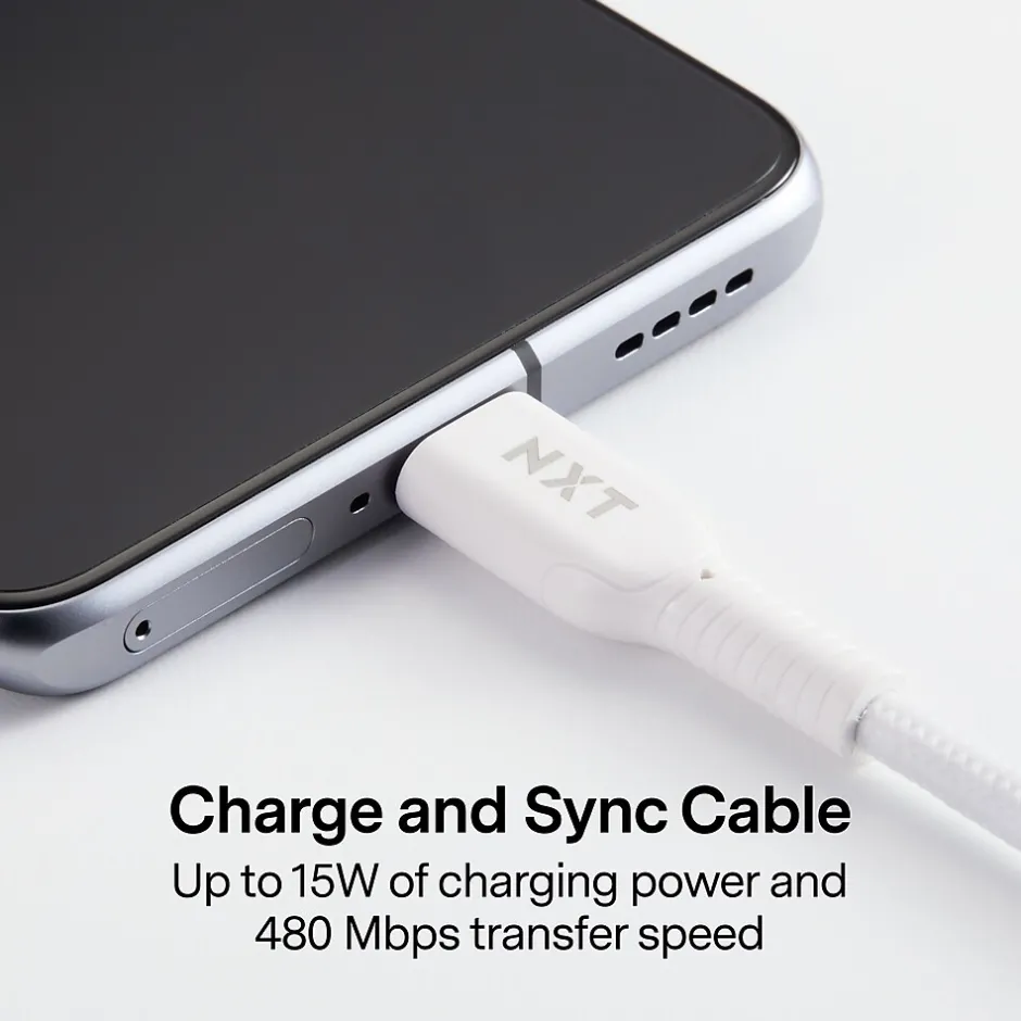 Connect this 4-foot cable to laptops, compatible smartphones and power sources for versatile operation. The braided cable is constructed to withstand the rigors of daily use. With up to 15 watts of charging power and a 480MB/sec. transfer speed, this NXT Technologies™ USB-C to USB-A cable delivers flexible use in the office.