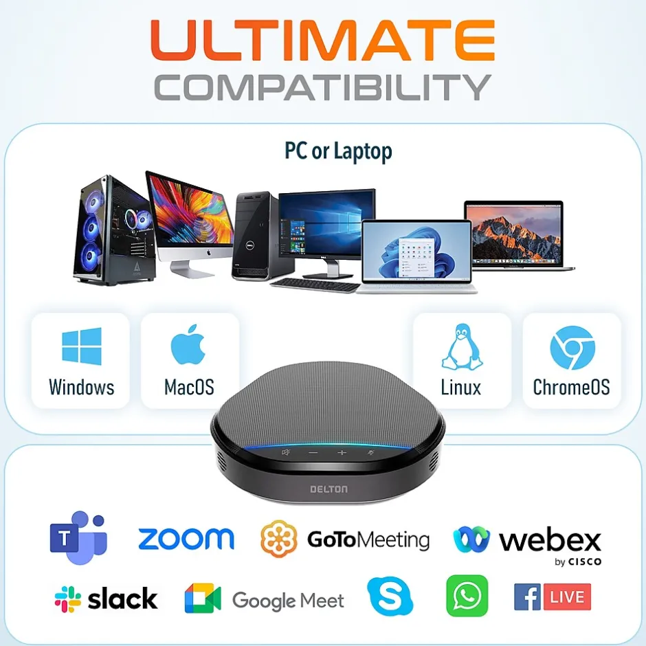 - Compatible with most video conferencing and software phone tools, including Microsoft Teams, Zoom, Google Meet, Skype, GoToMeeting, WebEx, RingCentral, and more