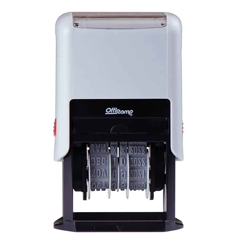 Use this self-inking stamp in busy office spaces and streamline your date stamping process. This stamp boasts sturdy construction that stands up well to the rigors of daily use. This Offistamp’s self-inking date stamp re-inks itself with every press, ensuring each stamped message is crisp and clear.
