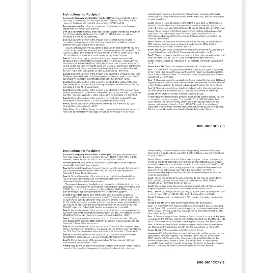 | Tax Form Pack Size | 1099-DIV |