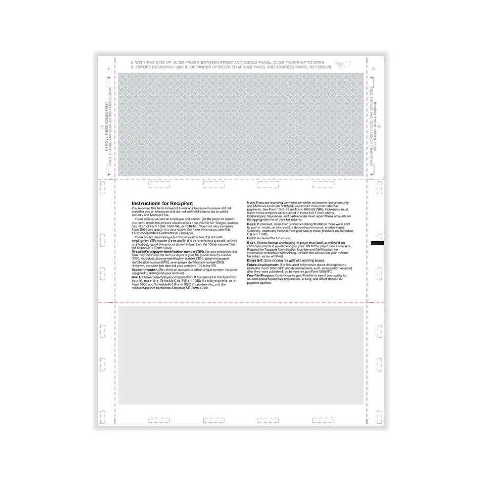 - Z-fold blank tax form with pressure seal