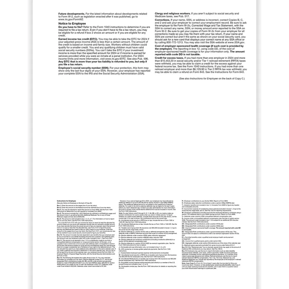 - Single-part, 3-up (horizontal): Employee Copies B, C, and 2 combined