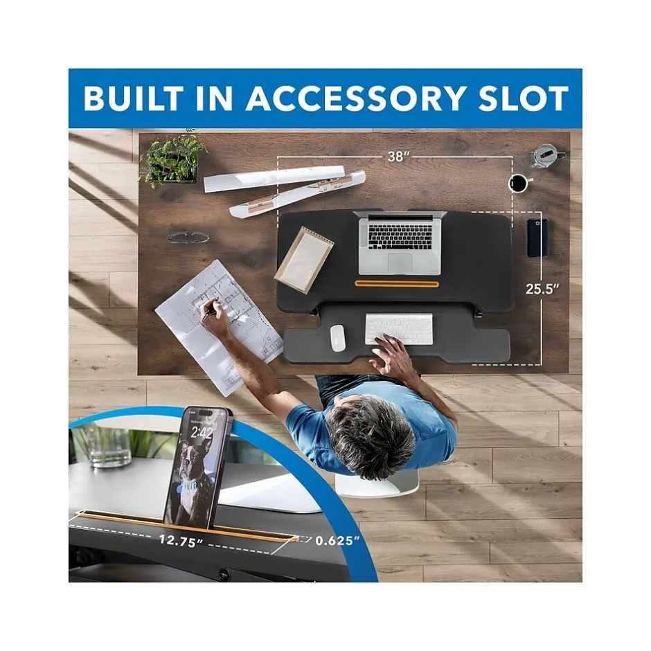 Online 38″W Electric Rectangular Adjustable Standing Desk Converter, Black (MI-8010) Standing Desks