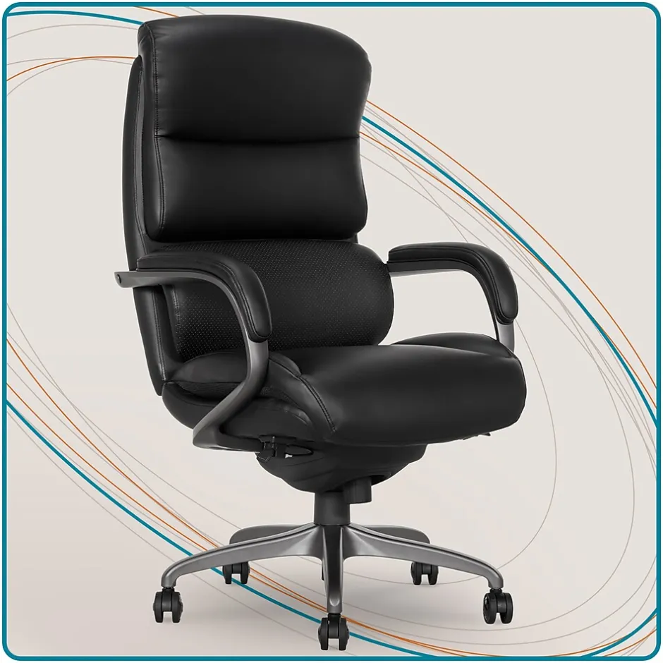 This La-Z-Boy Aberdeen computer and desk chair comes standard with the ComfortCore zoned technology for optimal lasting comfort. An advanced layering system is designed to offer deliberate, unique, and zone-based support. The chair has an extra-padded back design that will fit into any office area.