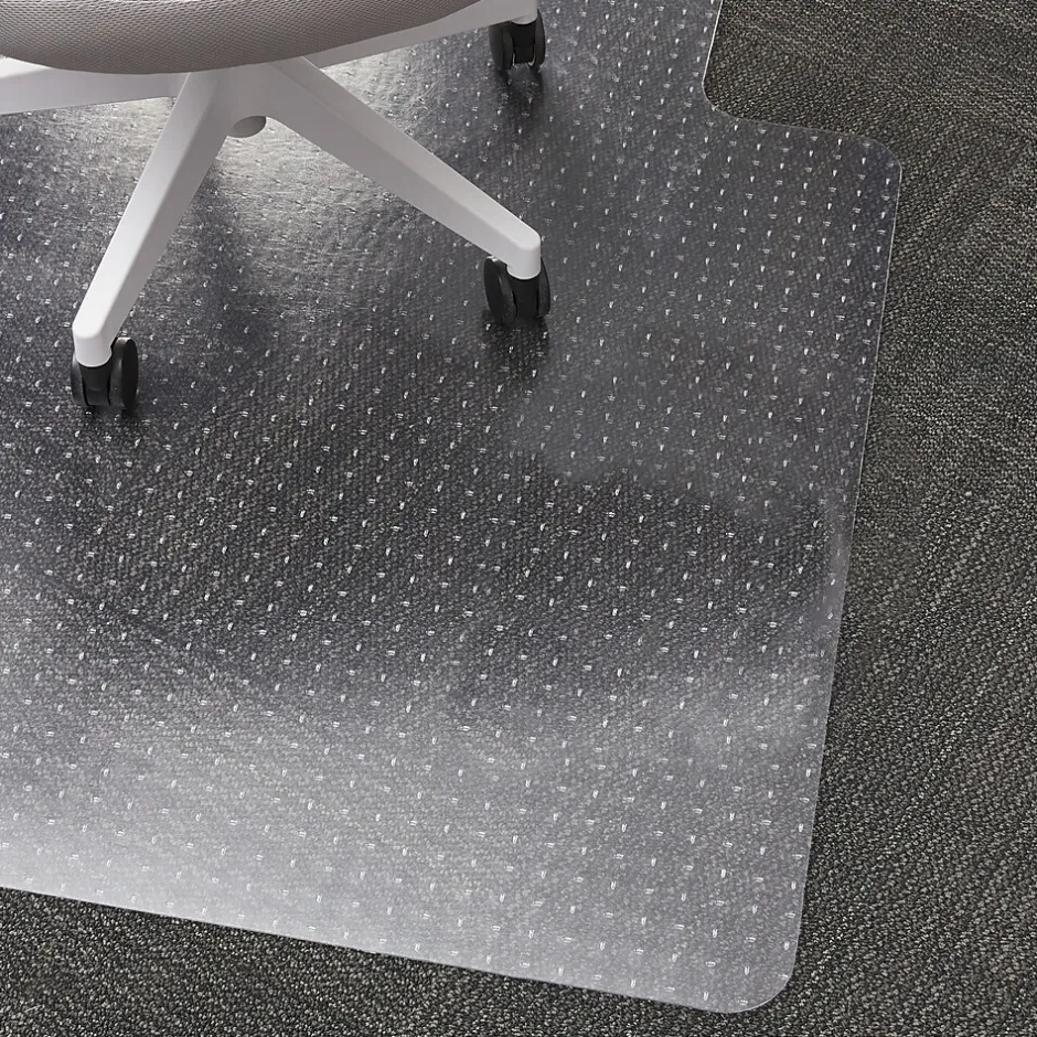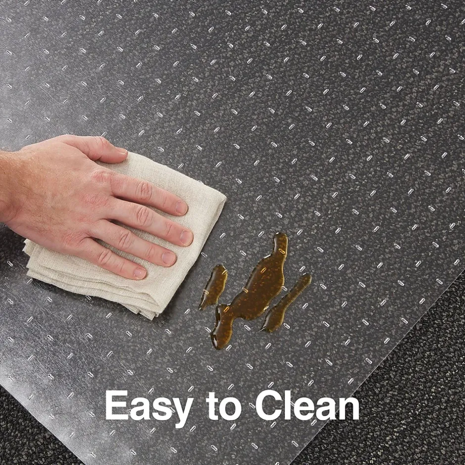 Extend the life of your flat pile commercial carpet (up to 1/8″ thick including padding depth) by protecting against chair caster wear and tear. The perfect addition to your workspace, this chair mat provides a smooth surface that enhances ergonomic comfort by allowing your rolling office chair to move freely. Easy to handle, this chair mat features rounded AnchorBar cleats (studs) that hold your mat in place and are gentle on carpets and fingers (no sharp spikes). This chair mat is made with durable vinyl that is GREENGUARD Gold Certified for low chemical emissions to promote a healthier workspace. Designed for use on carpeted surfaces only, do not use on hard floors.