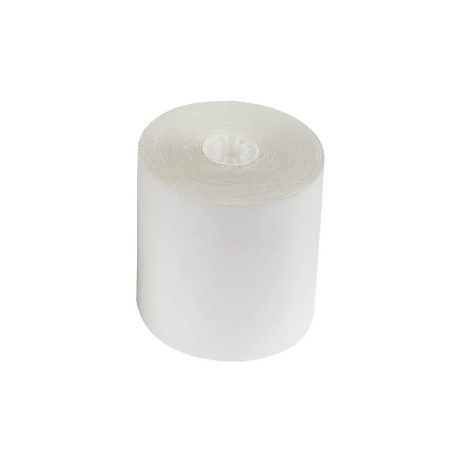 - 2-ply carbonless credit card machine rolls feature white top copy with canary customer copy