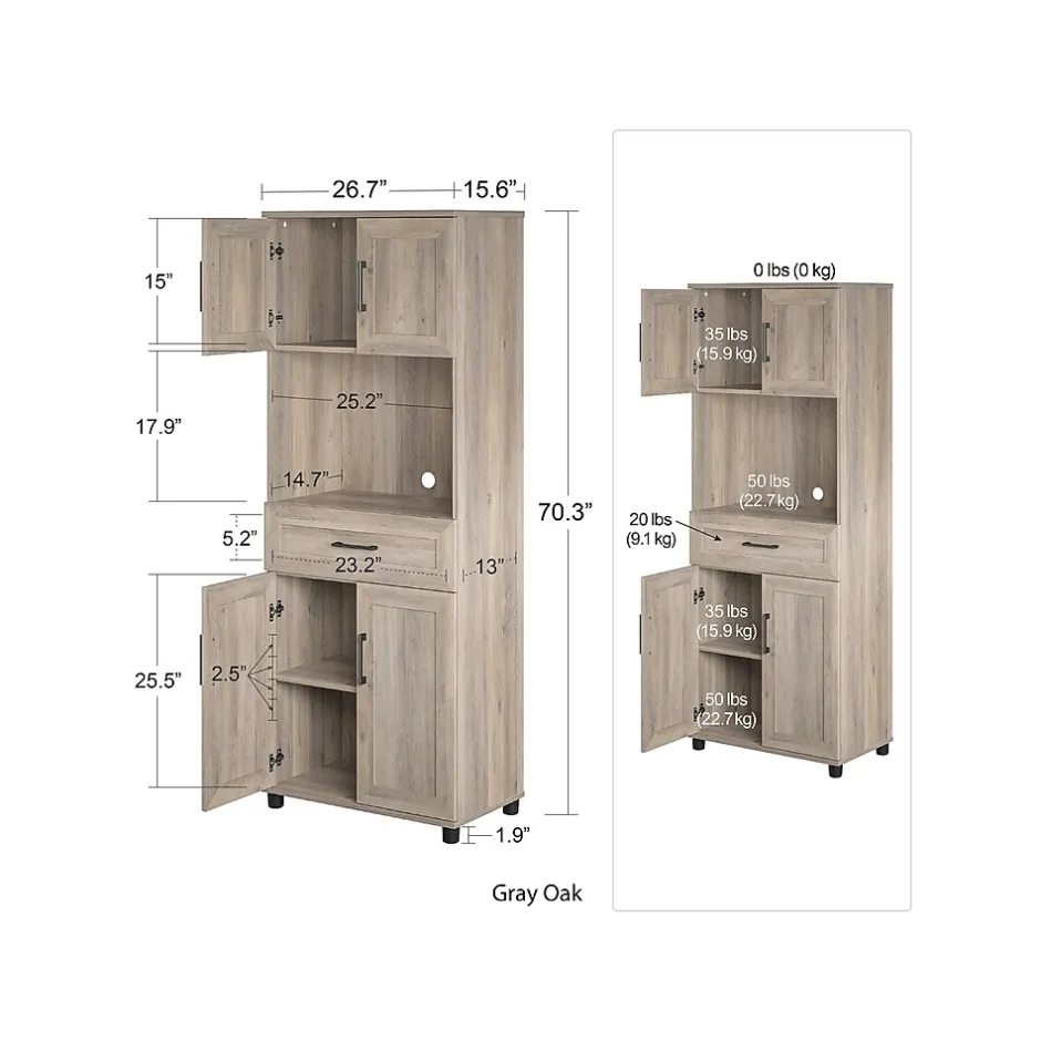 - Dimensions: 70.31″H x 26.69″W x 15.55″D