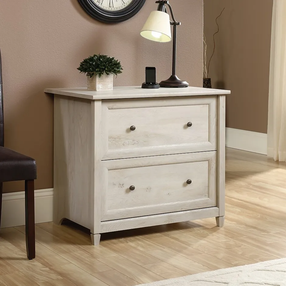 Looking to add convenient storage to your home without having to sacrifice on style? Well, we’ve got just what you’re looking for. Create the storage options you need while adding the style you want with this lateral file from the Edge Water collection. It features two large storage drawers with full extension slides that can hold letter or legal size hanging files so you can keep all your important documents organized. Its patented, interlocking safety mechanism allows only one drawer to open at a time for added safety. Its spacious top surface also makes a great place to store and display a variety of different items like an accent lamp, your printer, decorative plants and photos of your family and friends. Its charming good looks and simplistic design make it a perfect addition to any room in your home, whether it’s in your office or the family room. Finished in Chalked Chestnut, this beautiful file cabinet will have you feeling organized in no time.