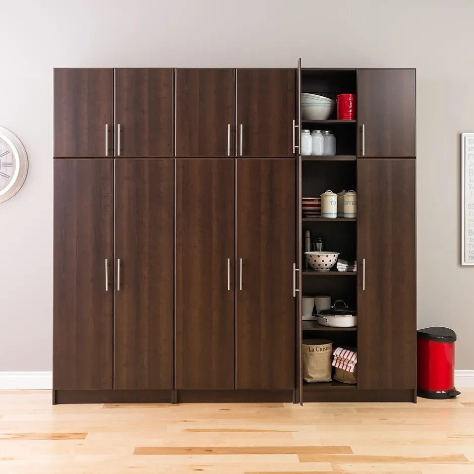 Modern, elegant and practical, the 32” Elite Stackable Wall Cabinet brings functionality without compromising on style. The rich espresso laminate flawlessly integrates with any space or décor. With one fixed and one adjustable shelf, The Elite Wall Cabinet is a great choice for any kitchen, entryway, laundry room, or anywhere else you may need some extra storage space. This item can be wall mounted alone or paired with the Elite Storage Cabinet in espresso to extend your storage space to 89 inches high. Position multiple cabinets side by for a complete storage solution.