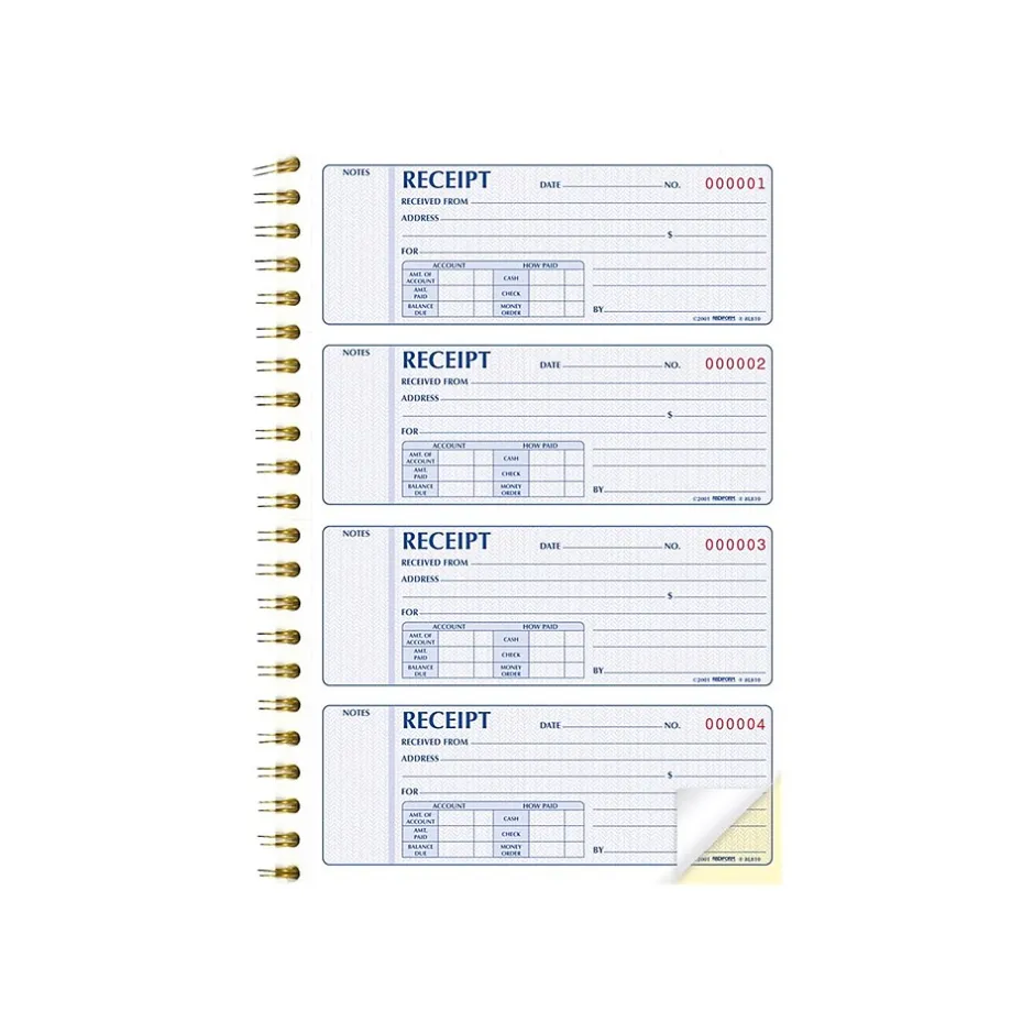 - Money receipt book is consecutively numbered for easy organization