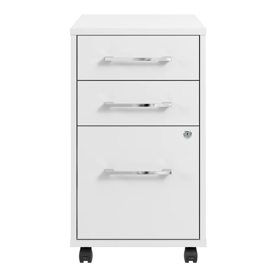 The Bush Business Furniture Hustle 3 Drawer Mobile File Cabinet provides the form and function needed to support your entrepreneurial spirit without breaking the bank. An ideal choice for small to medium-size businesses and home offices alike, the small filing cabinet rolls effortlessly throughout your workspace to provide storage where it’s needed most. The bottom drawer opens on smooth full-extension ball bearing slides for easy access to letter, legal, and A4-size paperwork while two box drawers organize writing utensils and other small office supplies. Drawers can be locked to safeguard sensitive documents as well as valuable items. This 3 drawer file cabinet with wheels has been meticulously designed and tested to meet or exceed ANSI/BIFMA standards for safety, durability, and performance and is backed by a 10 Year Manufacturer’s Warranty. American made with U.S. and imported parts.