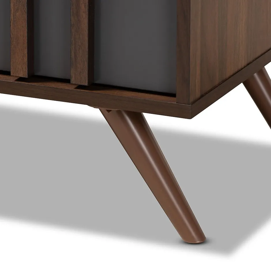 - Two-tone grey and walnut brown finish
