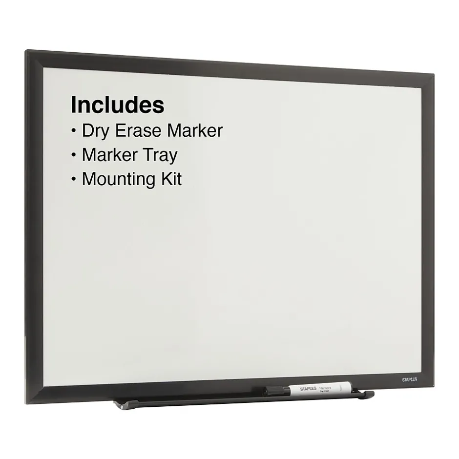 - Package includes: whiteboard, dry-erase marker and built in tray for markers and erasers